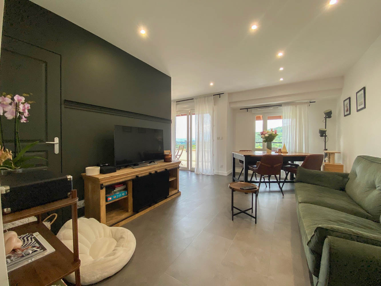 Un espace de vie baigné de lumière La pièce de vie, élégante et conviviale, accueille une cuisine entièrement équipée ouverte sur le séjour. Elle s’ouvre sur une magnifique terrasse en angle, véritable prolongement de l’appartement, offrant une vue panoramique dégagée sur la verdure — un cadre idéal pour vos moments de détente ou vos soirées entre amis.