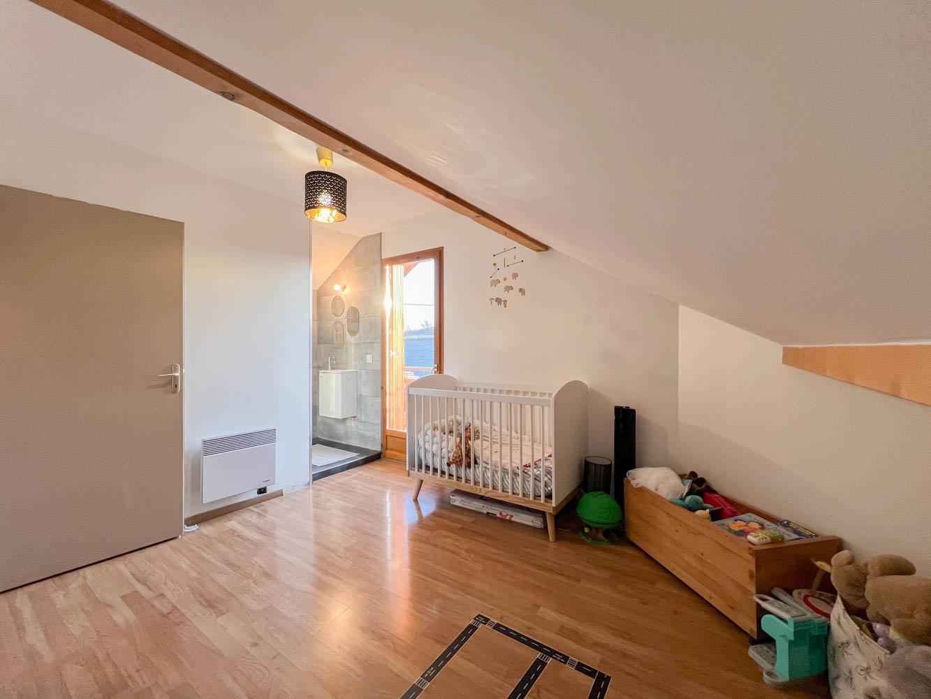 Au premier demi-niveau se trouvent une chambre, une salle de bains et un WC séparé. Au demi-niveau supérieur prennent place deux autres chambres dont une suite parentale avec sa salle d’eau et son balcon à la vue dégagée.