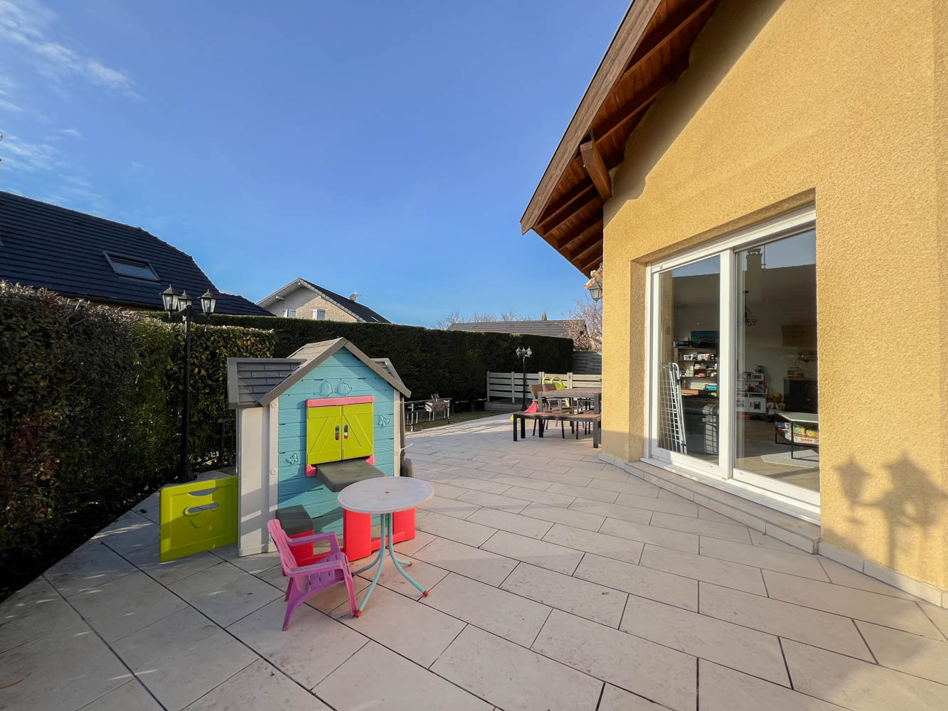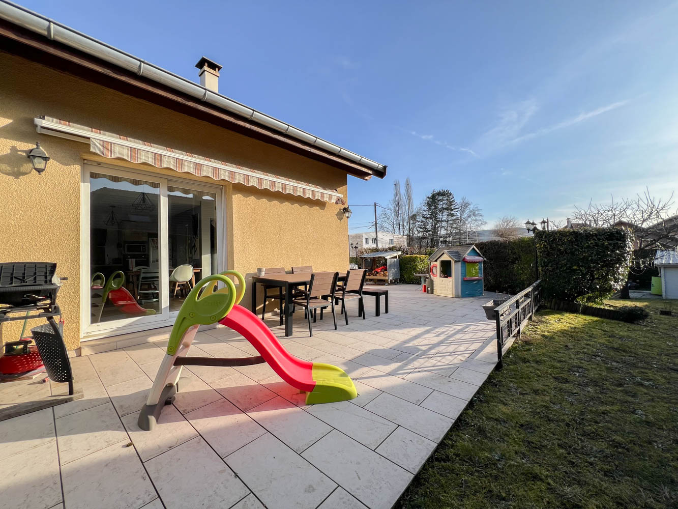 A Sillingy, maison individuelle construite en 2002, avec terrasse et grand jardin sans vis-à-vis, ainsi qu’une piscine hors-sol et un espace potager.
