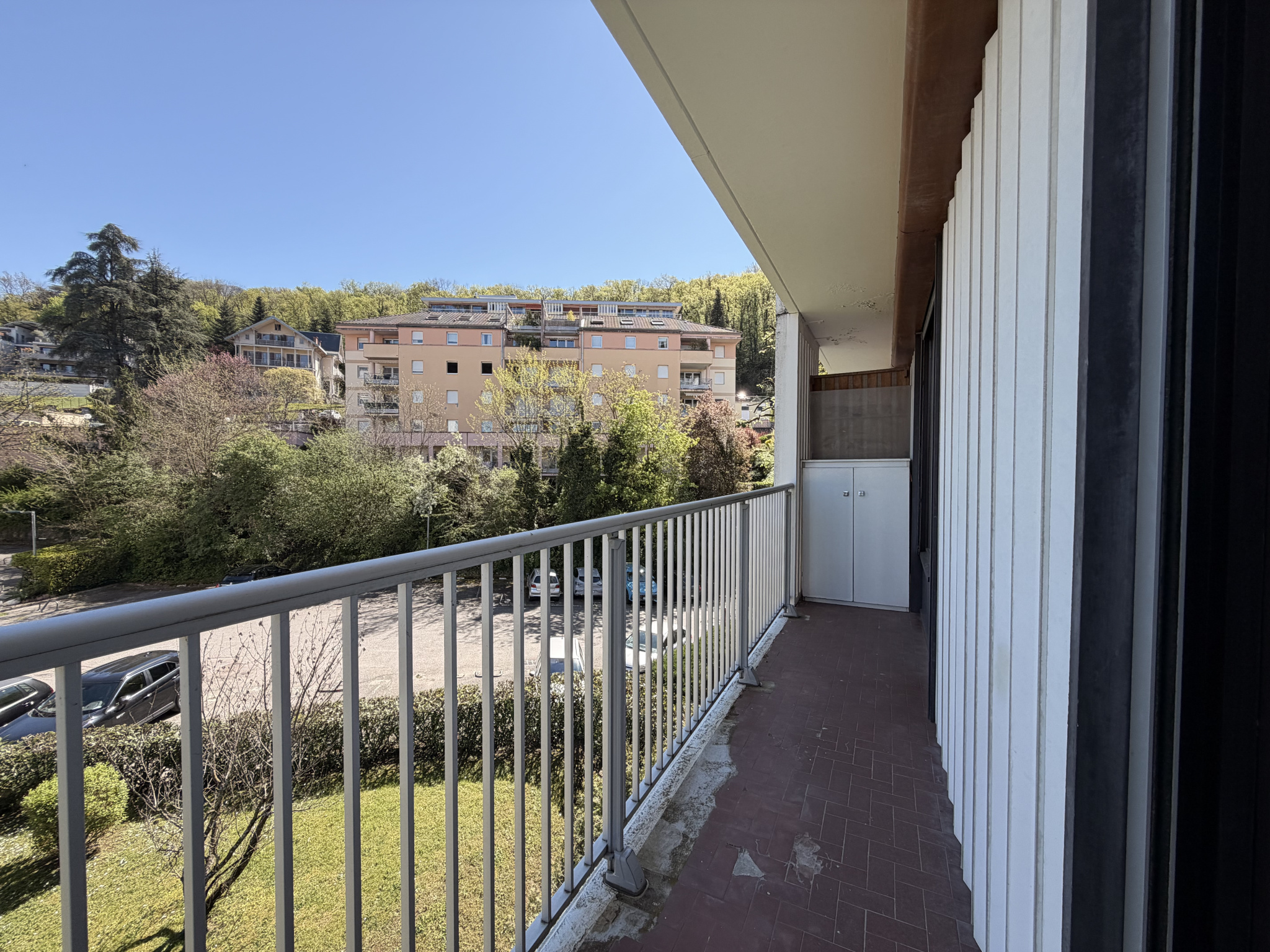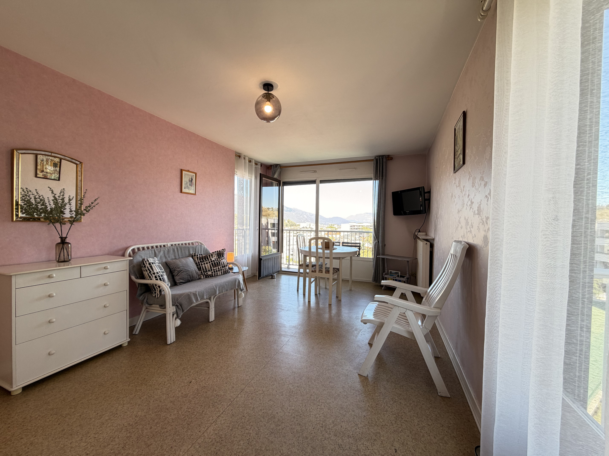 Ce spacieux studio de 31 m2, idéalement situé à moins de cinq minutes à pied du centre-ville d’Aix-les-Bains, offre un cadre de vie paisible et une vue imprenable sur les montagnes environnantes. Situé au troisième étage d’une copropriété construite en 1979, l’appartement est accessible par ascenseur et bénéficie des équipements collectifs d’une piscine et d’un court de tennis. Sa situation géographique privilégiée, conjuguée à la flexibilité de ses aménagements, en fait un choix judicieux pour une résidence secondaire, principale ou un investissement locatif.
