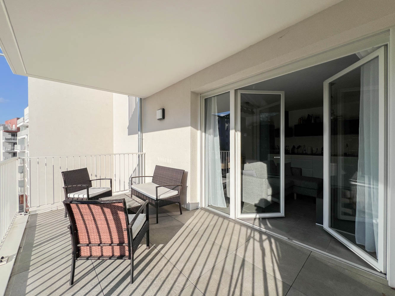 Dans un immeuble très récent de 2023, appartement de 3 pièces au 4ème étage avec ascenseur, dans un secteur calme, avec une grande terrasse à la vue dégagée et sans vis-à-vis.