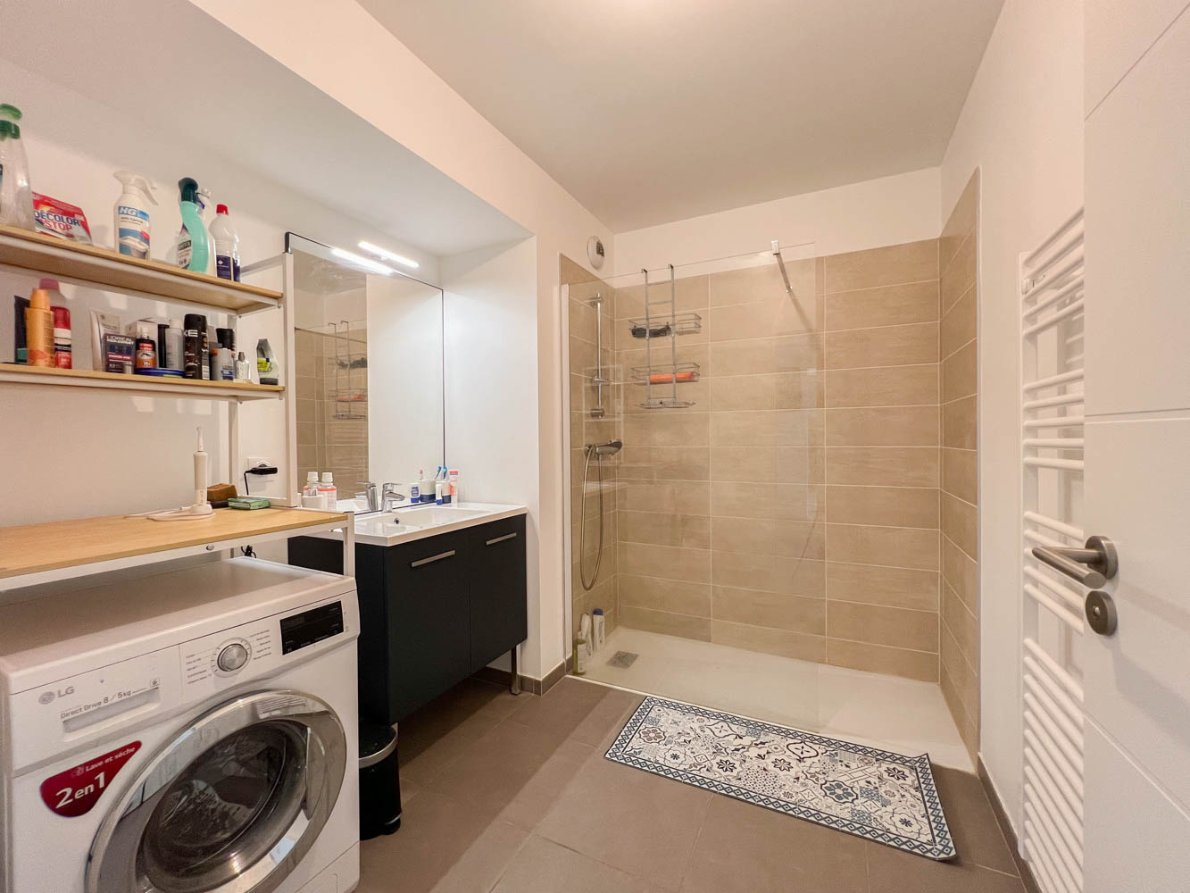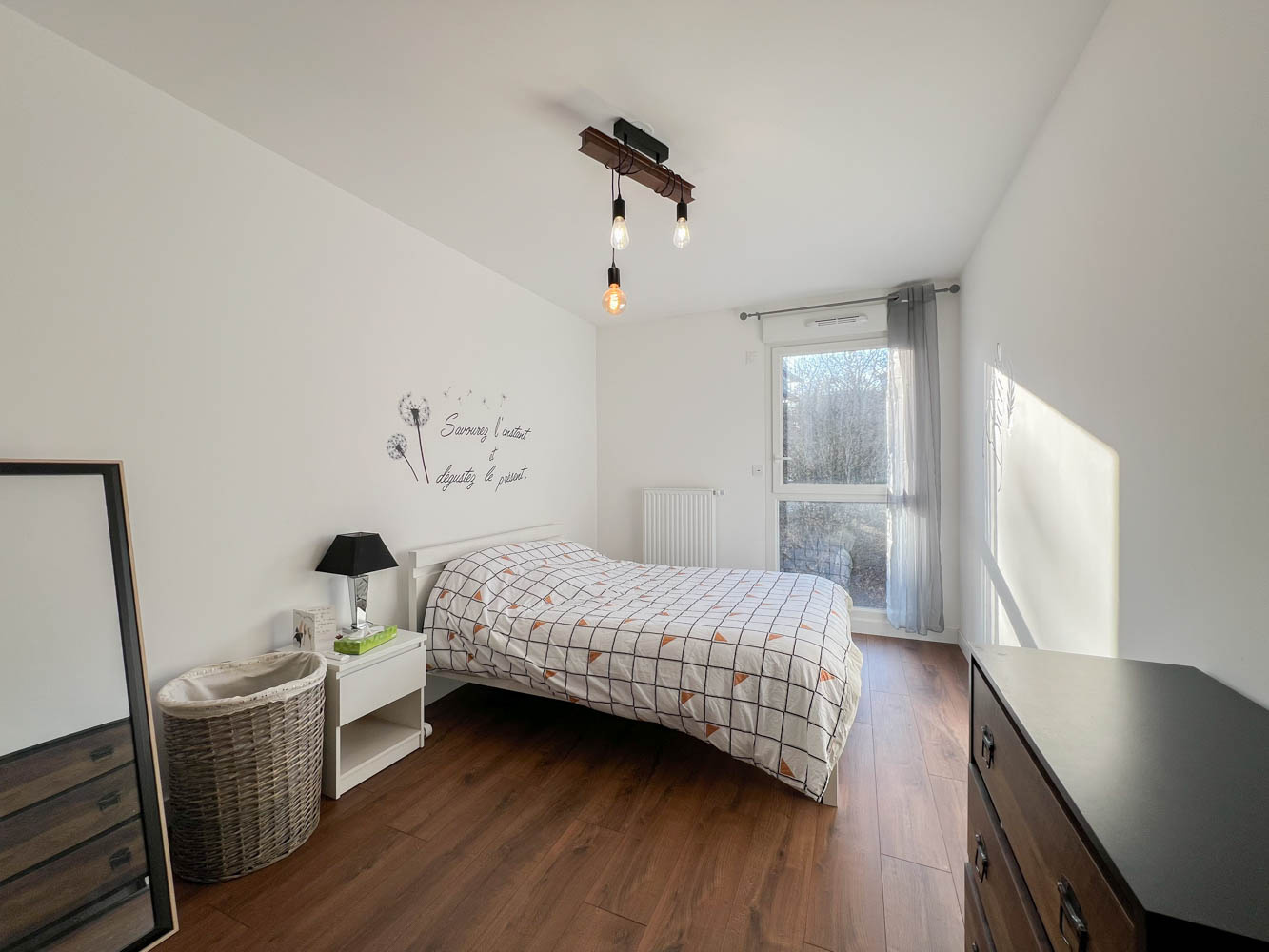 L’appartement se compose d’une entrée avec un grand placard de rangement, d’une pièce de vie lumineuse avec une cuisine ouverte entièrement équipée, donnant sur une belle terrasse couverte exposée Sud-Ouest, de deux chambres avec placards aménagés, d’une salle d’eau spacieuse et d’un WC séparé.