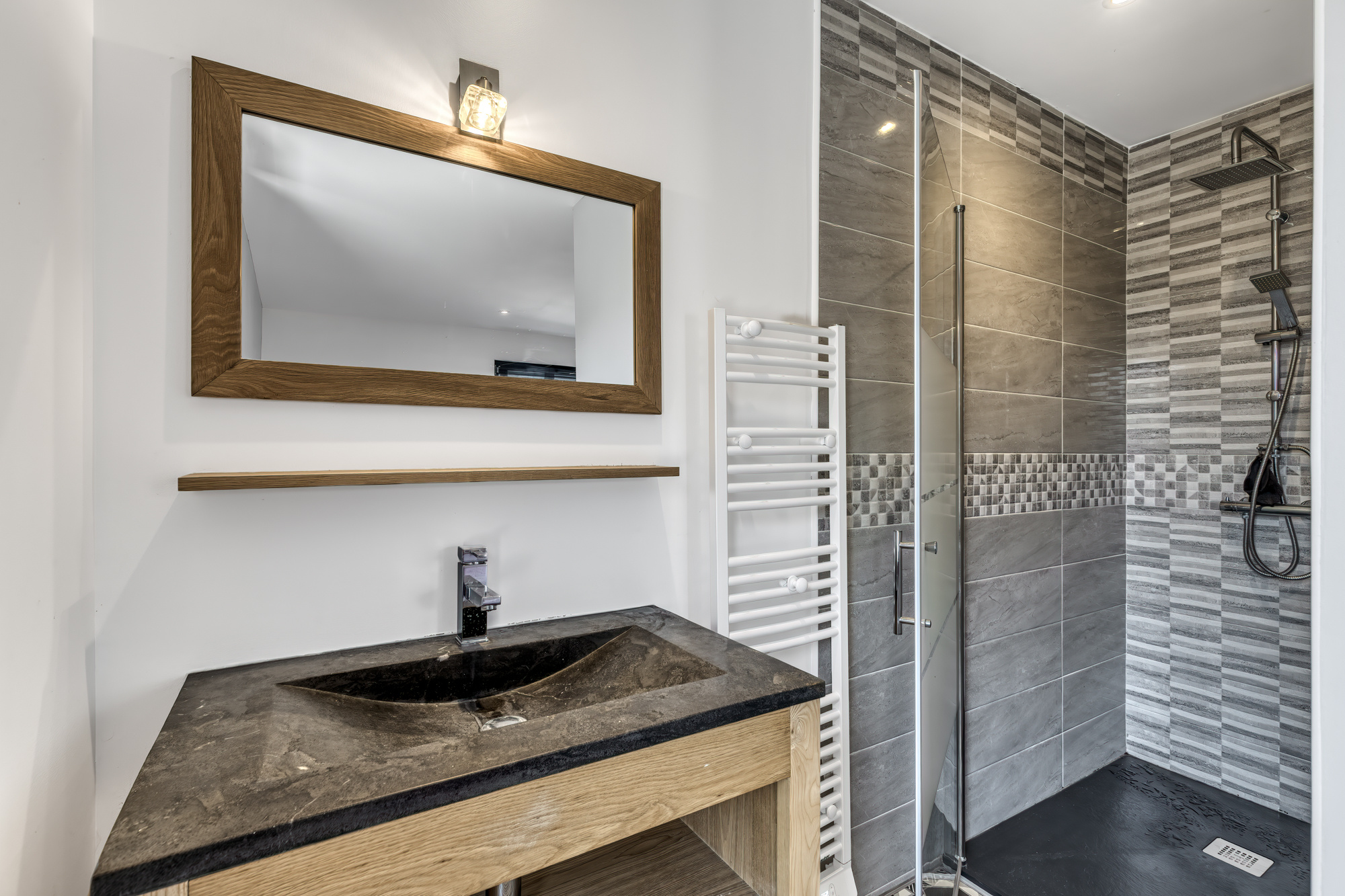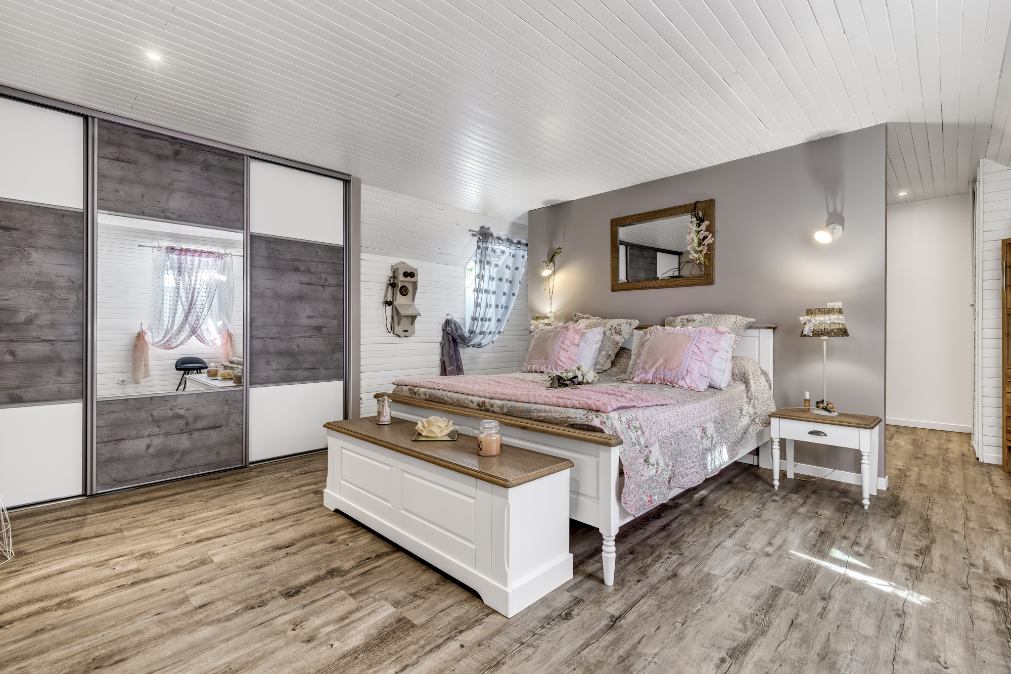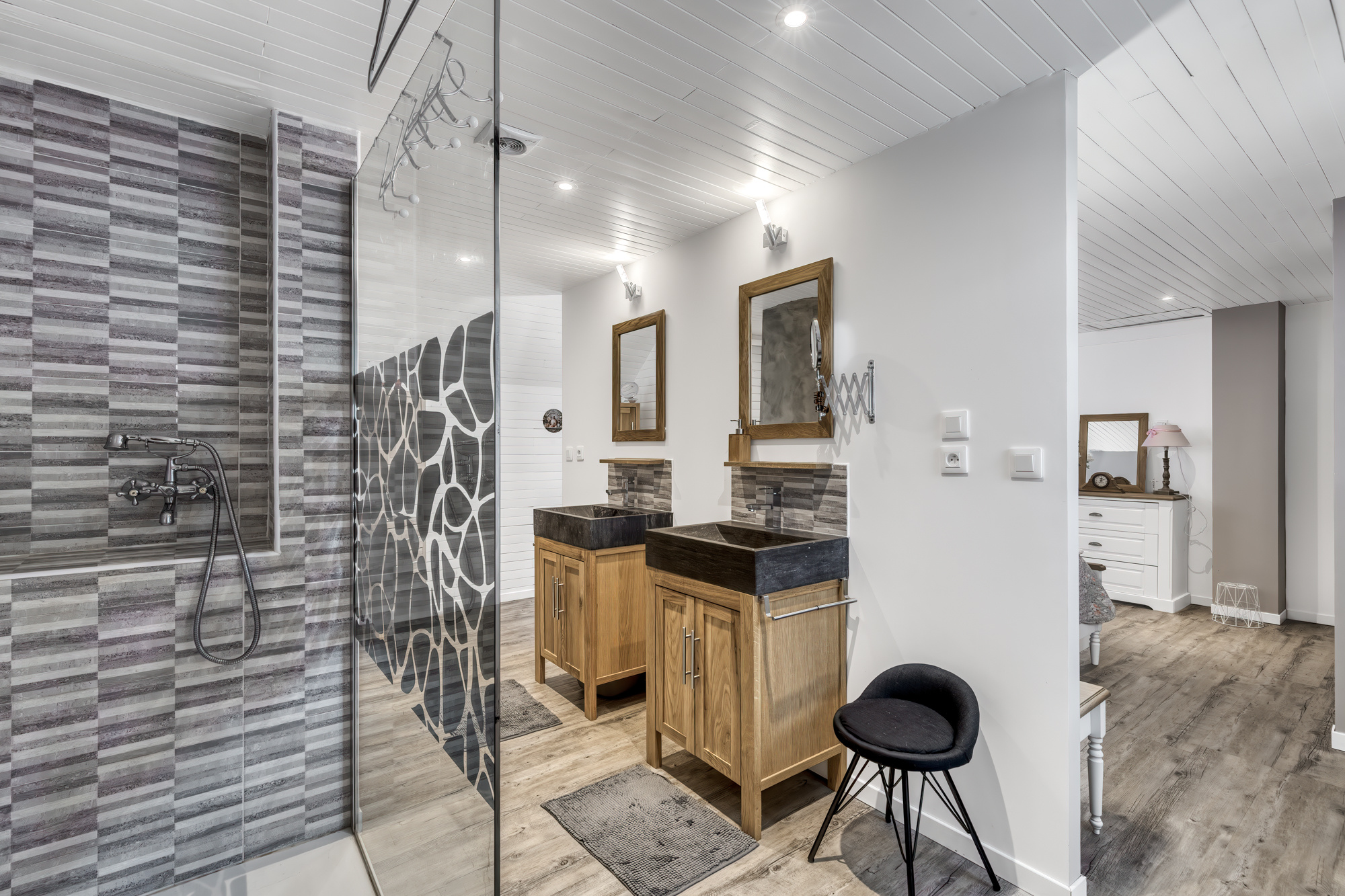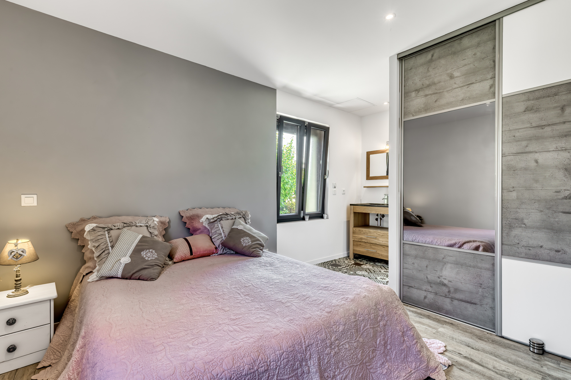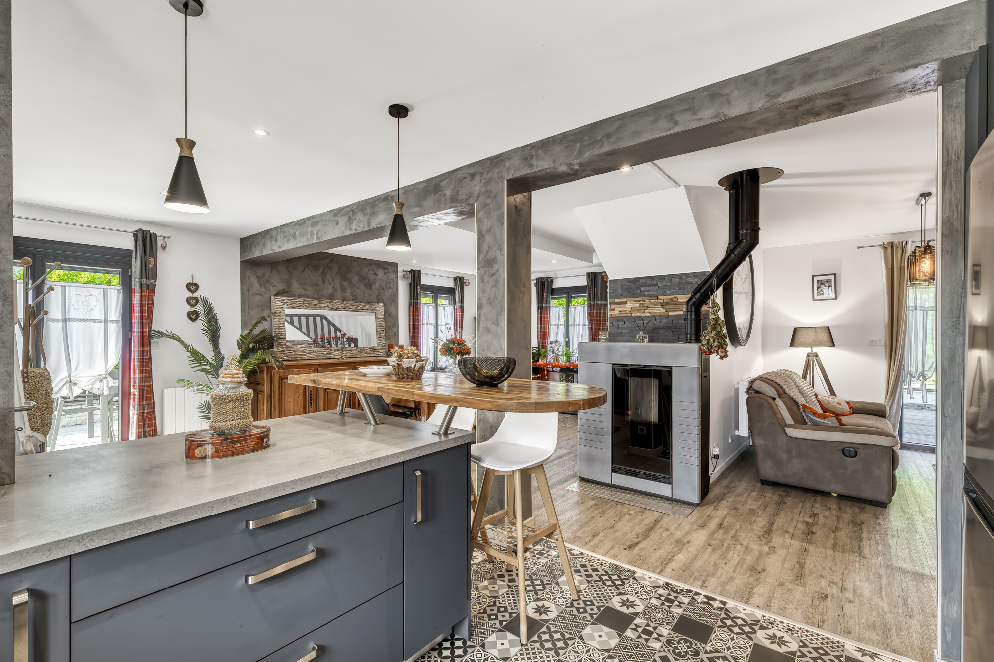 La maison dispose d’un sas d’entrée permettant d’accéder à un séjour avec une cuisine ouverte, un accès à une terrasse de plus de 50 m2 exposée au sud, une salle d’eau et une buanderie. À l’étage, la maison dispose de trois chambres dont une suite parentale de plus de 30 m2 et une troisième salle de bain. La maison dispose également d’un appartement totalement indépendant bénéficiant de sa propre entrée privée et d’une suite parentale ainsi que d’une terrasse privée de 20 m2.