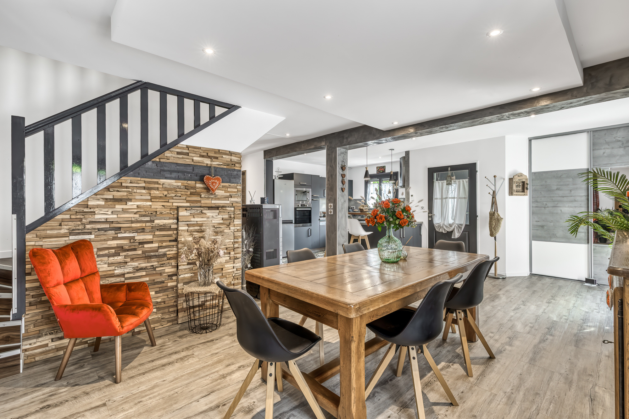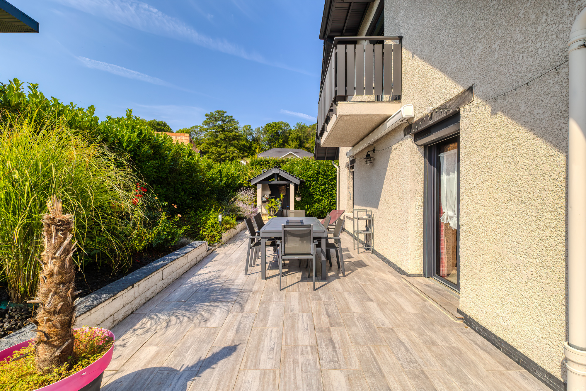 Grande maison de 225 m2 de superficie totale (185 m2 habitable) édifiée en 1990 et entièrement rénovée en 2022 sur une parcelle constructible et piscinable de 1 083 m2.