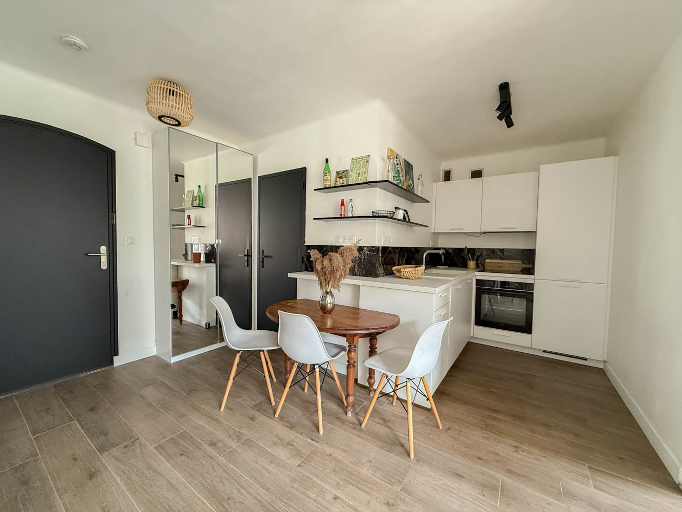 To visit without delay! The agency offers a fully renovated one-bedroom apartment with contemporary features. It features a fully equipped kitchen opening onto a bright living room with access to a balcony, a separate bedroom with a view of the castle and access to the balcony, an office area separated from the living room by a glass wall, as well as a modern bathroom and toilet. Ideally located in the heart of Annecy city center on a high floor with elevator in a well-maintained building. You will appreciate the renovation carried out on this apartment, the distribution and optimization of each of the spaces as well as its location in the heart of downtown Annecy. A cellar completes this property. Condominium fees: EUR1,176/year including heating. Number of units in the condominium: 32. No proceedings in progress. Estimated annual energy costs for standard use: between EUR900 and EUR1,270 per year. Average energy prices indexed as of January 1, 2021. Information on the risks to which this property is exposed is available on the Géorisques website: www.georisques.gouv.fr